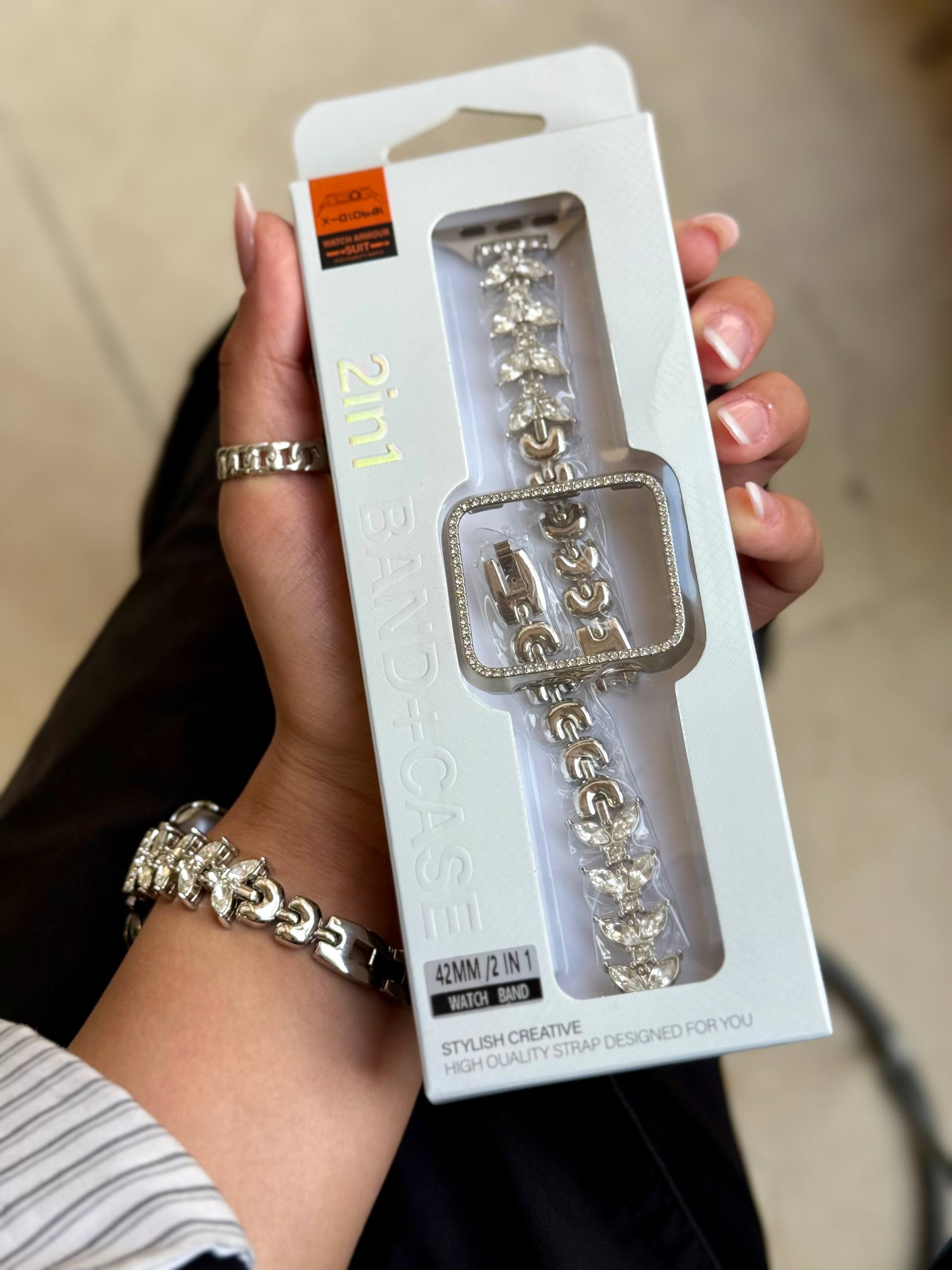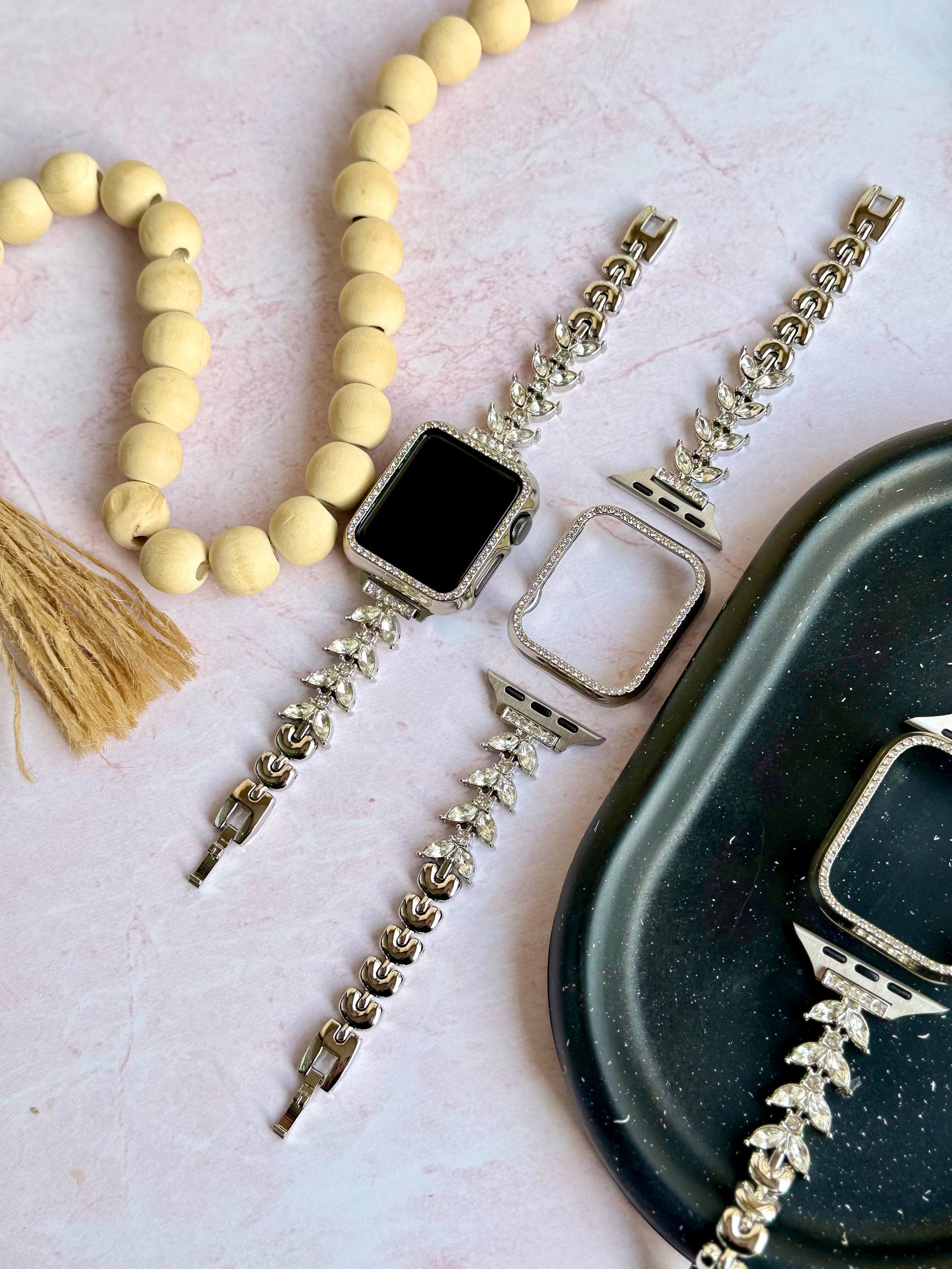 طراحی ظریف برگها که با نگینهای کریستالی درخشان و باکیفیت پوشیده شده، اپل واچ شما را از یک گجت ساده به یک جواهر خیرهکننده تبدیل میکند. این ست برای درخشیدن در مجالس خاص یا ارتقای استایل روزمره شما ساخته شده است.