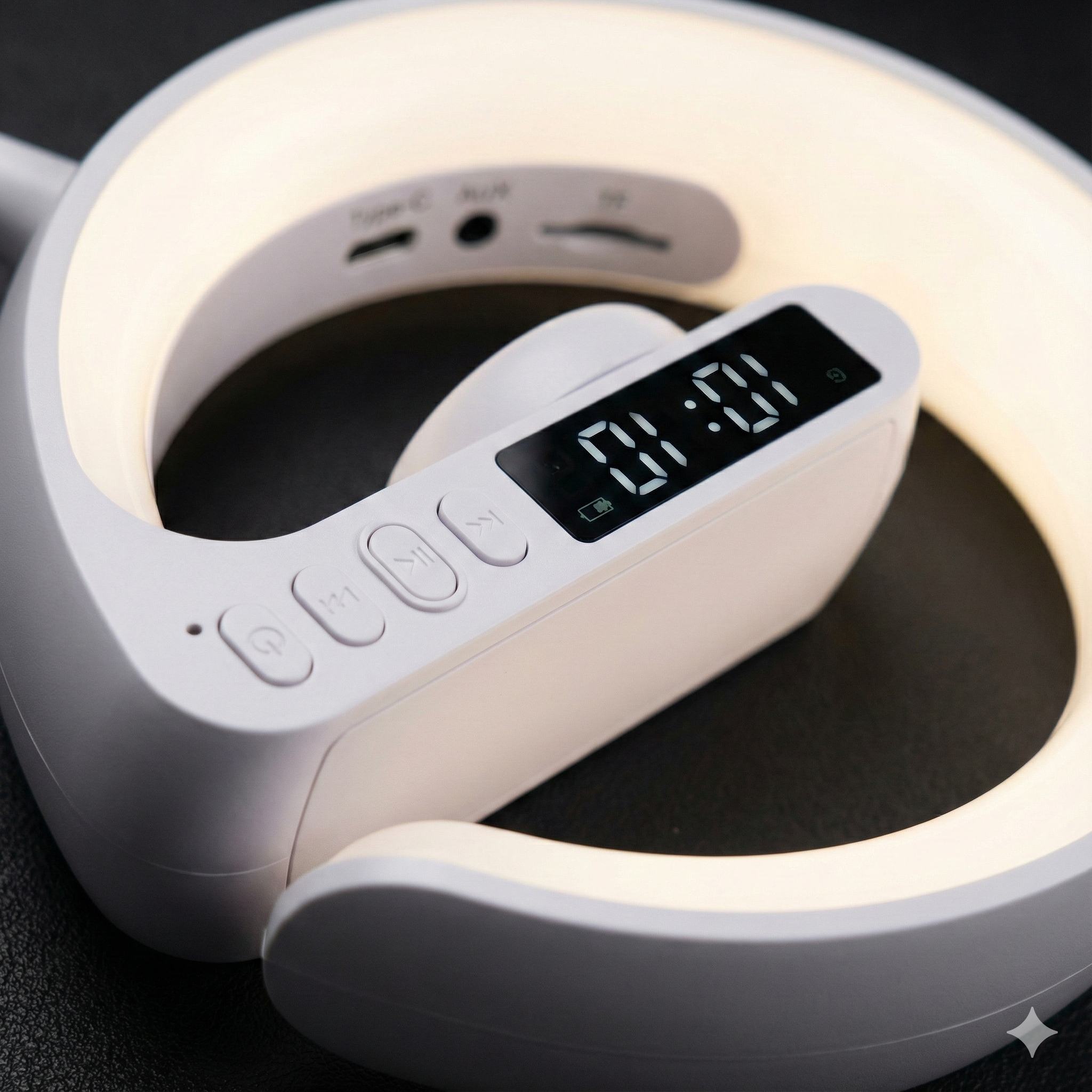 یکی از جذاب‌ترین ویژگی‌های اسپیکر و چراغ خواب G63، قابلیت Sunrise Wake-up است. وقتی آلارم را تنظیم می‌کنید، نور دستگاه به آرامی مثل طلوع خورشید روشن می‌شود تا بیداری طبیعی و بدون استرس داشته باشید.
