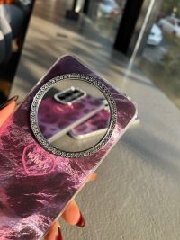 1. حلقه نگین‌دار (Crystal Bezel): این فقط برای زیبایی نیست. این حلقه کریستالی درخشان، برجسته‌تر از سطح لنزهای دوربین شماست و مثل یه گارد لوکس، جلوی تماس مستقیم لنز با سطوح و ایجاد خط و خش رو می‌گیره.