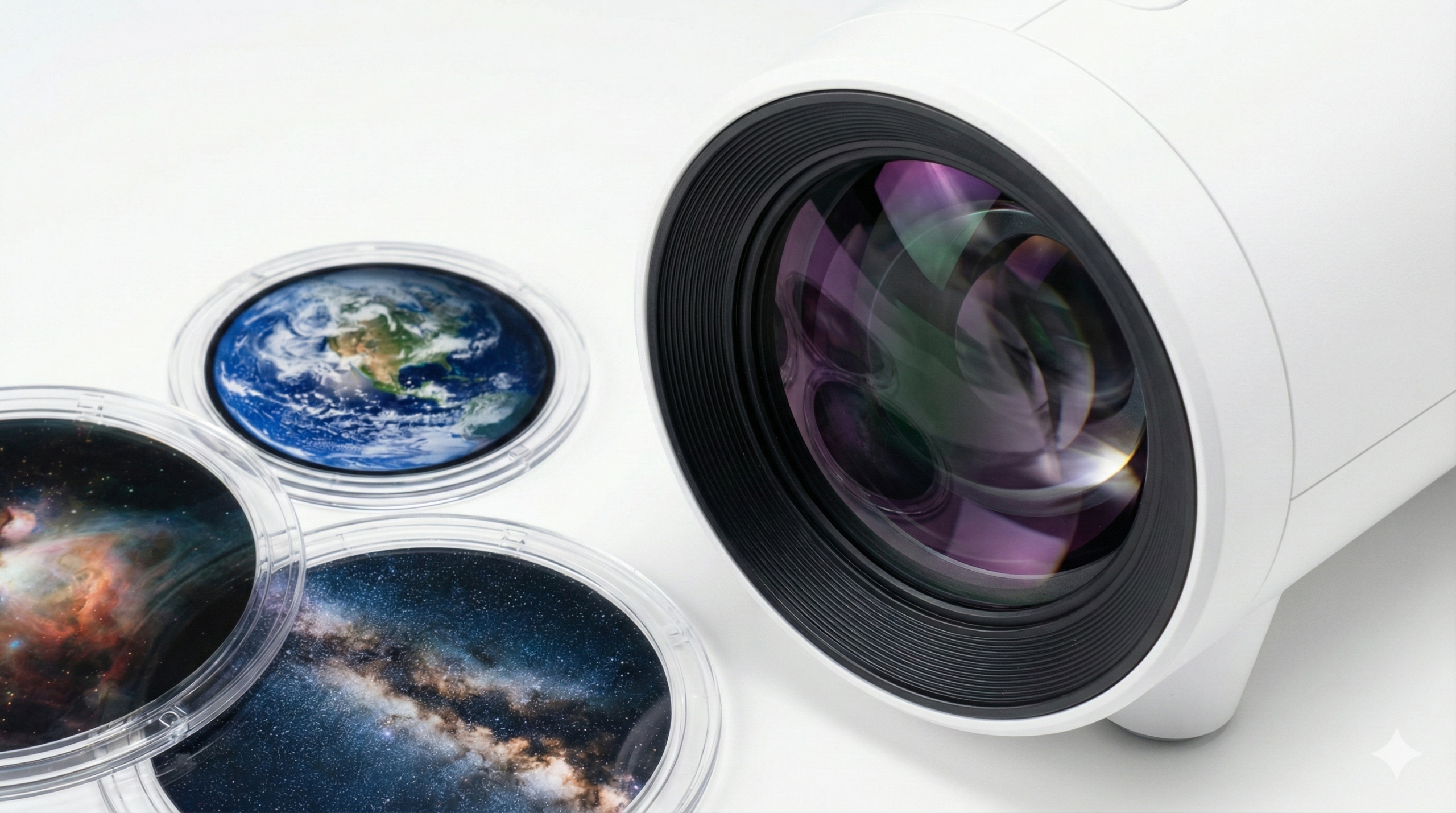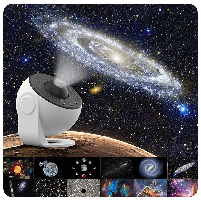 اغلب پروژکتورهای بازار فقط نورهای لیزری رنگی و بیکیفیت پخش میکنند. اما آسماننمای اپتیکال BL-DQY02 یک گجت علمی و مهندسی شده است. این دستگاه با استفاده از سیستم لنزهای نوری (Optical Lens System) و دیسکهای فیلم ۴K، تصاویر واقعی ثبت شده توسط تلسکوپهای فضایی را با شفافیت خیرهکننده روی سقف اتاق شما «چاپ» میکند.