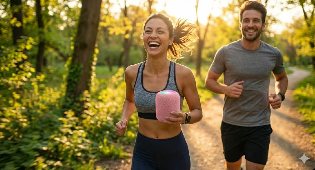 - نورپردازی هوشمند: حلقه LED بالای اسپیکر با موزیک تغییر رنگ میده.
